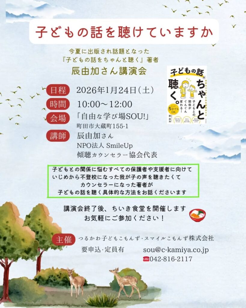 「子どもの話を聞けていますか?」 辰由加さんの講演会を開催します!
